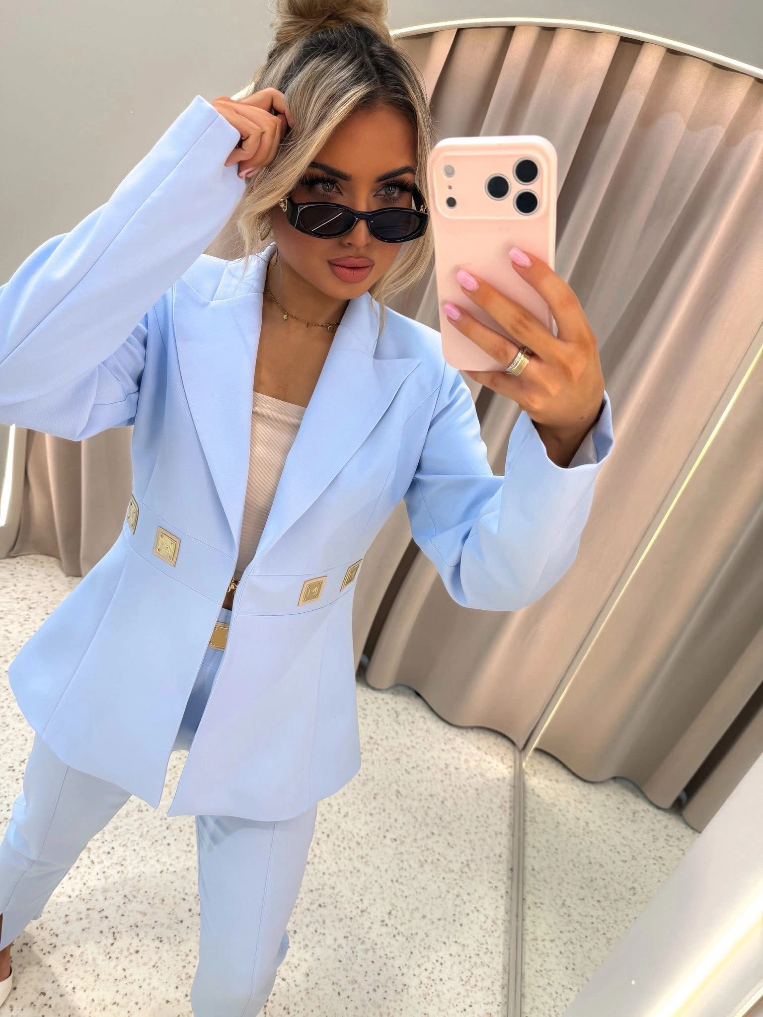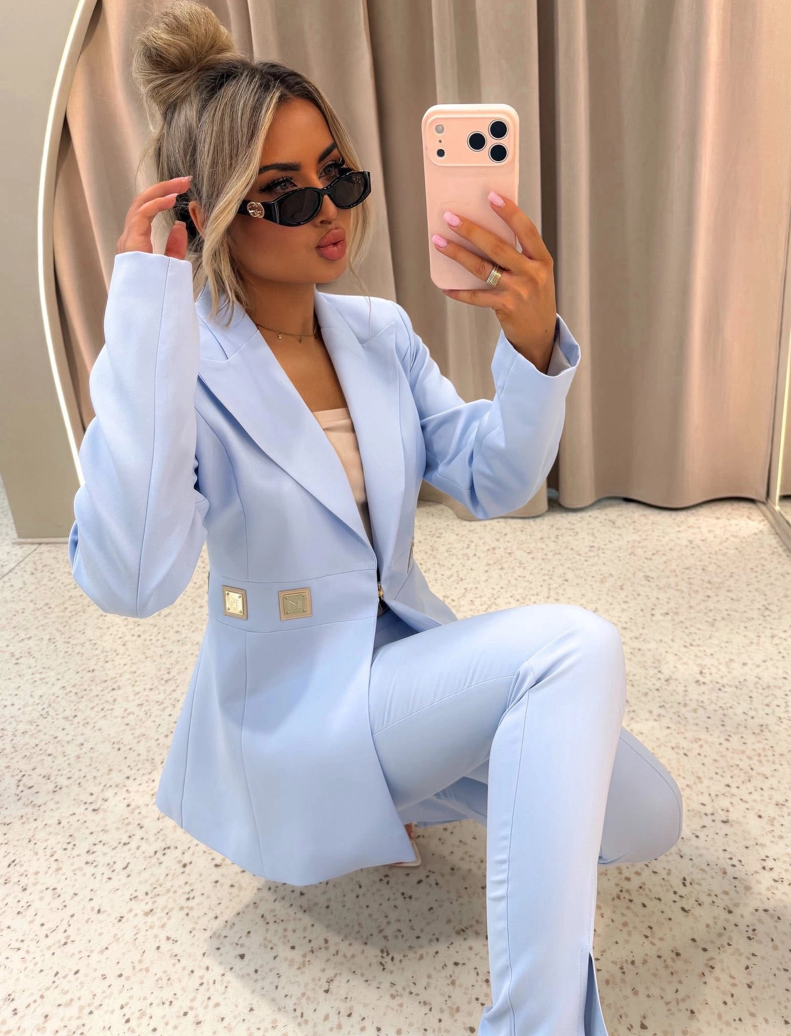 Poznaj ELISABETT – garnitur stworzony dla kobiet, które kochają luksus i perfekcję. Premium wykonanie, dopracowane detale oraz idealnie taliowana marynarka podkreślają sylwetkę z niezwykłą elegancją. Dopełnieniem są smukłe cygaretki, które razem tworzą spójny, niezwykle szykowny total look.