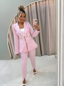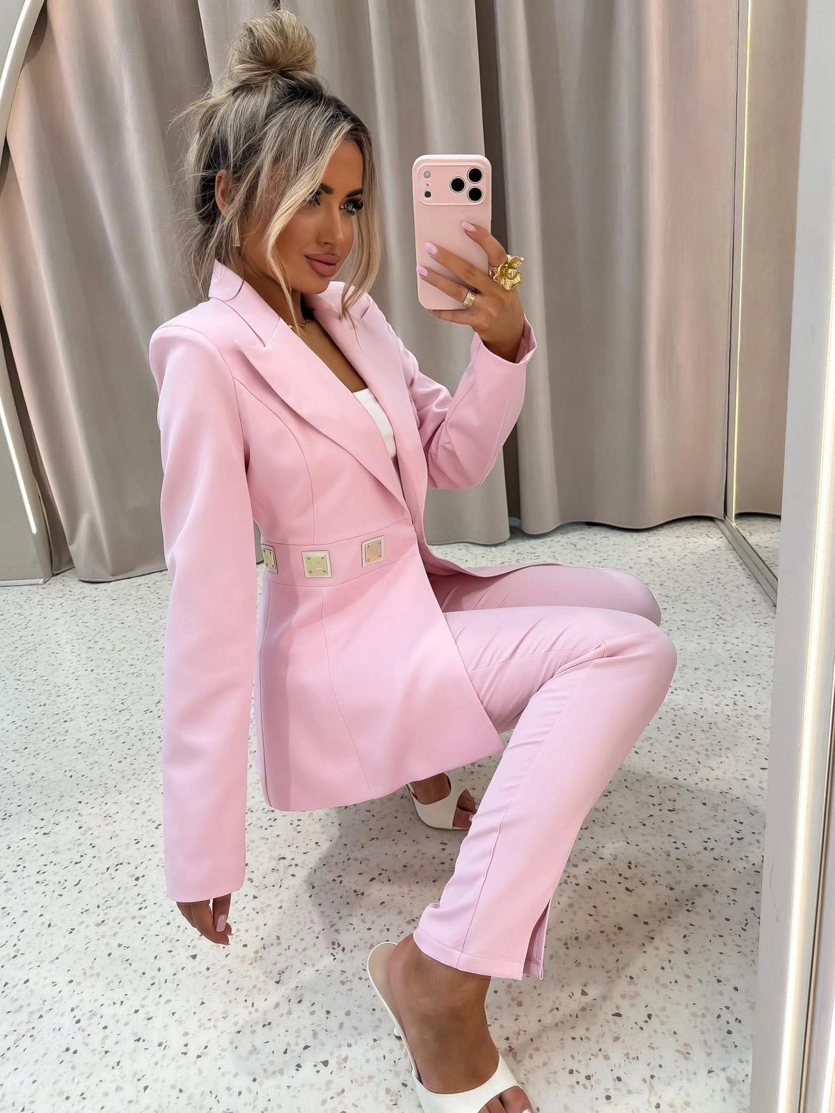 Poznaj ELISABETT – garnitur stworzony dla kobiet, które kochają luksus i perfekcję. Premium wykonanie, dopracowane detale oraz idealnie taliowana marynarka podkreślają sylwetkę z niezwykłą elegancją. Dopełnieniem są smukłe cygaretki, które razem tworzą spójny, niezwykle szykowny total look.