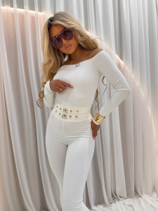 Leginsy z prążka GOLD STRIPE La Monne kolor białe