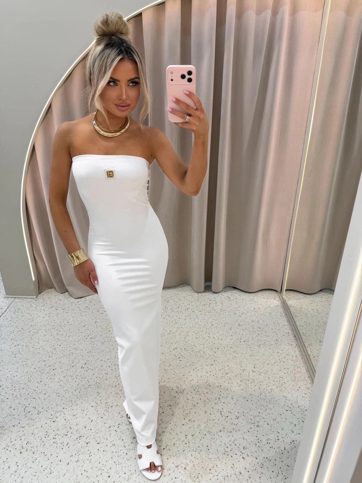 Góra sukienki posiada gumkę co idealnie dopasuje się do Twojego biustu i pozwoli poczuć się komfortowo.