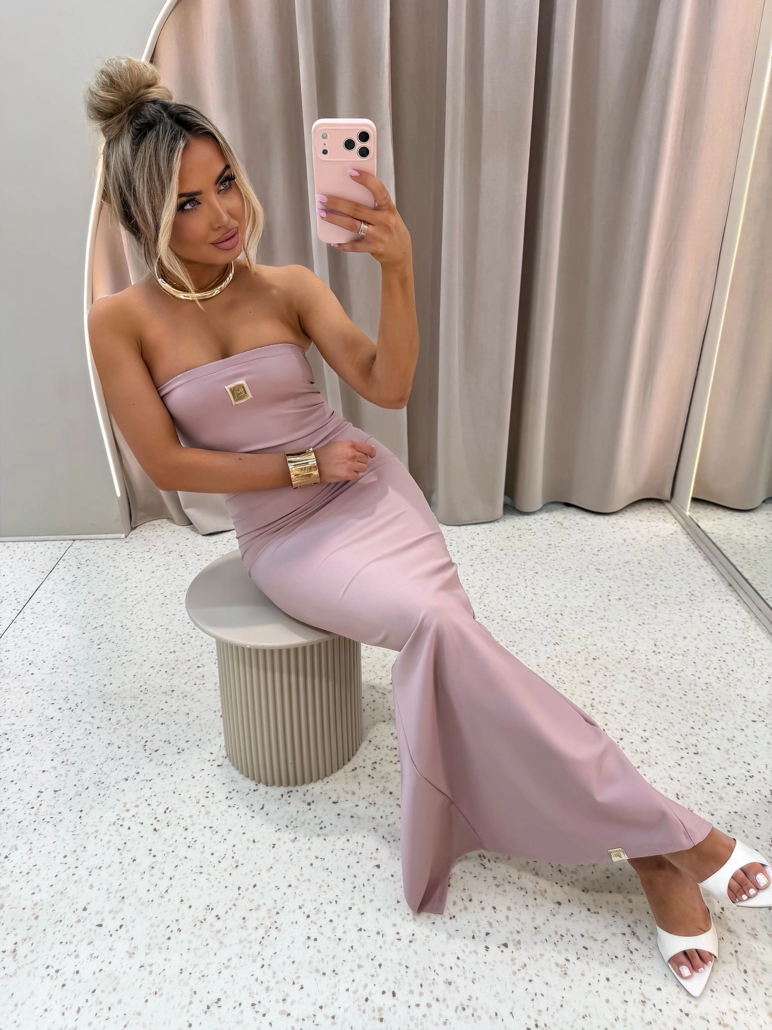 Sukienka CLASSY La Monne pudrowy róż