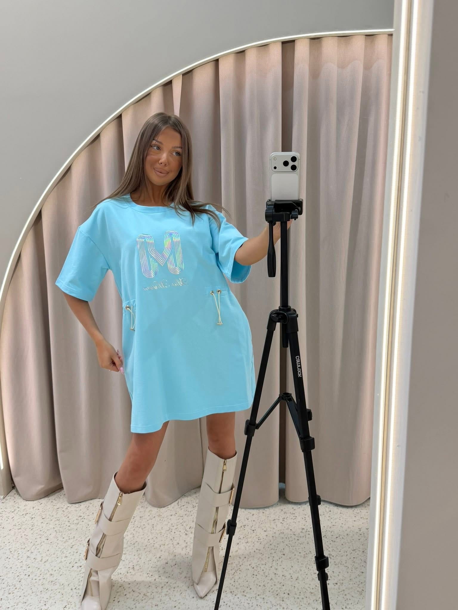 Przedstawiamy nasz wyjątkowy oversize'owy T-shirt, który łączy w sobie komfort i styl w jednym! Ten innowacyjny produkt został zaprojektowany z myślą o wszechstronności — dzięki specjalnie wszytej gumce, możesz w łatwy sposób przekształcić go w stylową sukienkę lub modną tunikę