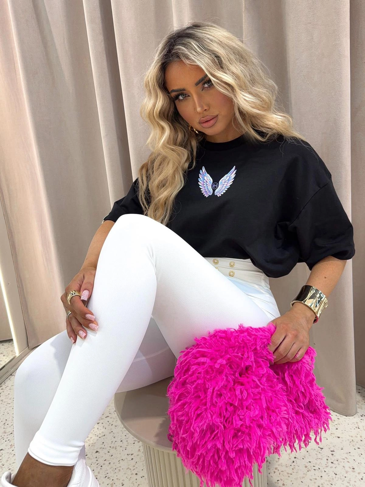 Styl oversize:Modny krój oversize dodaje t-shirtowi nowoczesnego charakteru, idealnie komponując się z jeansami, spódnicami czy szortami.